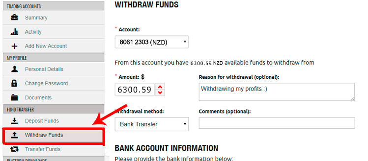 As you can see from the screenshot below, I decided to use the 'withdraw funds' function to withdraw $6,300.59 from my account.